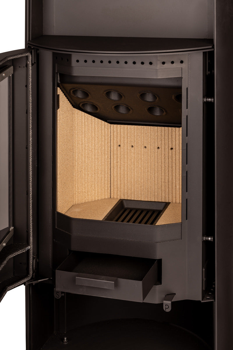 Die profilierten Vermiculite-Formteile der Ofenauskleidung fördert die gewünschte Verwirbelung der Brenngase für eine saubere Verbrennung – und sieht dabei mit ihrer hohen Festigkeit und der ansprechenden Oberfläche auch noch richtig gut aus.