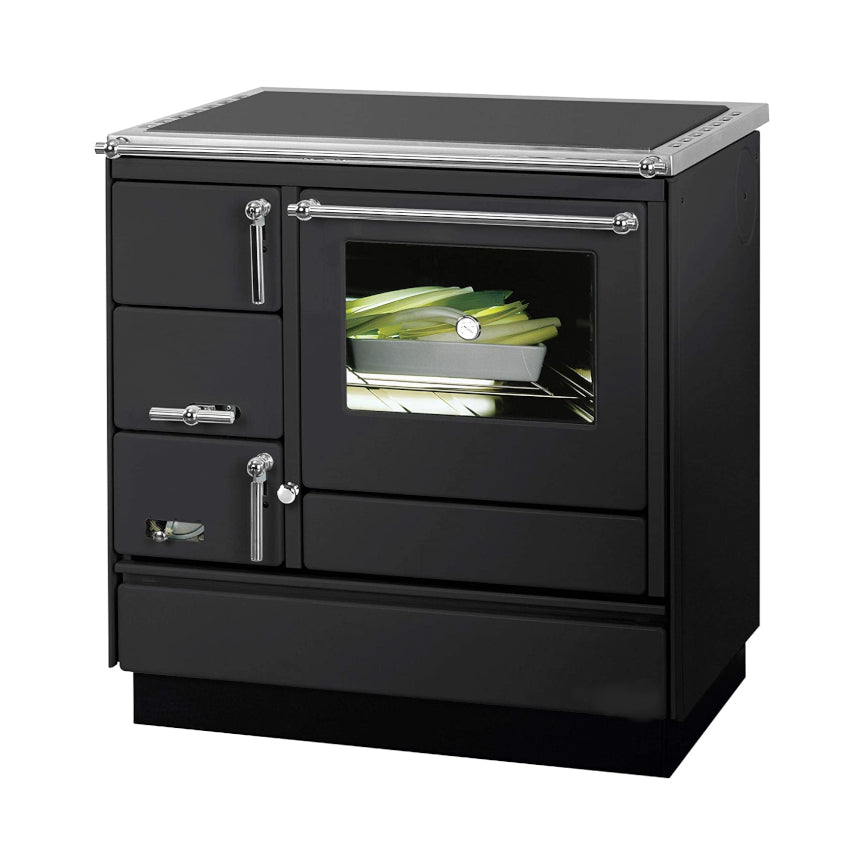 Der 7,0 kW Küchenofen Linz-81 2.0 wirkt durch seine Gusseisentüren und dem umlaufenden Edelstahlrahmen sehr modern und wird der Eyecatcher in Ihrer Küche werden. Sie bereiten mühelos leckere Gerichte auf der Kochplatte oder im Backfach zu. Der Küchenofen beheizt Räume mit bis zu 144 m³ Volumen und bietet die Möglichkeit den Brennraum zu verkleinern, wovon Sie im Sommer profitieren. Dadurch wird der Raum nicht unnötig erwärmt, wenn Sie das Essen zubereiten. Das Kochfeld ist mit einem Edelstahlrahmen eingefasst und ist durchgehend lackiert. Nützliche Details wie das Aschefach mit Wenderost, das extrabreite Backfach und die geschliffene Kochplatte lassen den Festbrennstoffherd zu einem wunderbaren Küchenofen werden.