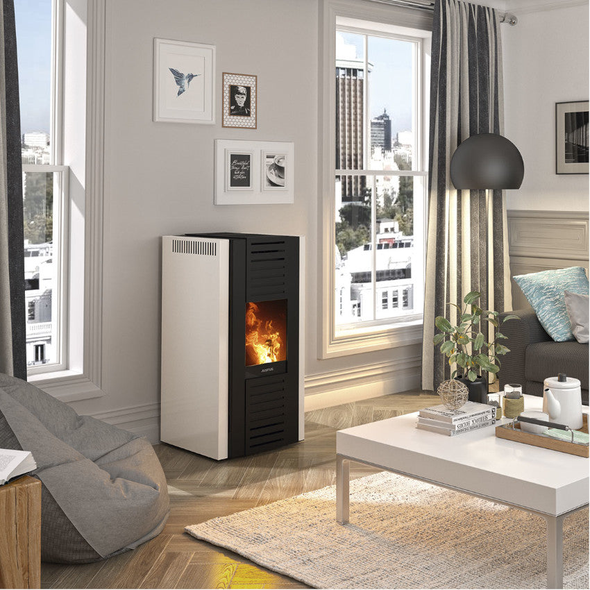 Justus | Pelletofen | Sirkos 2.0 | 6 kW | Seidenweiß, Stahl Schwarz