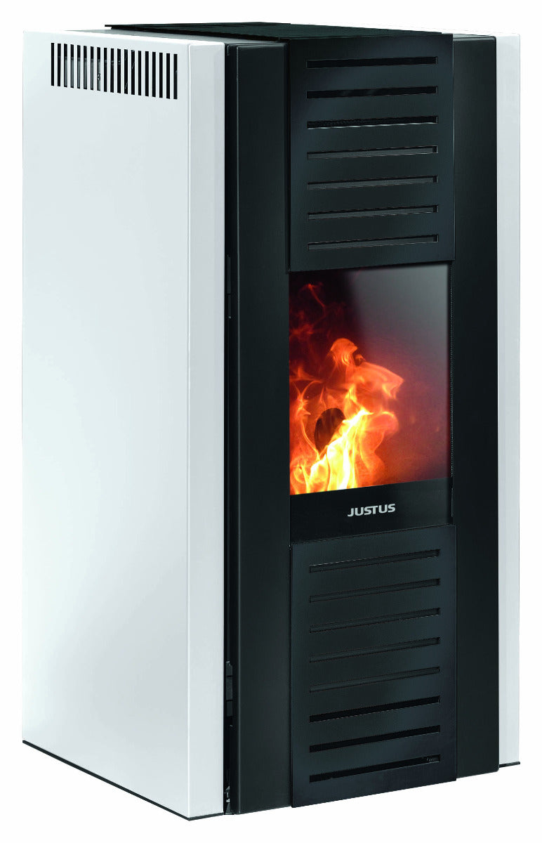 Justus | Pelletofen | Sirkos Aqua 2.0 | 9,4 kW | Seidenweiß, Stahl Schwarz