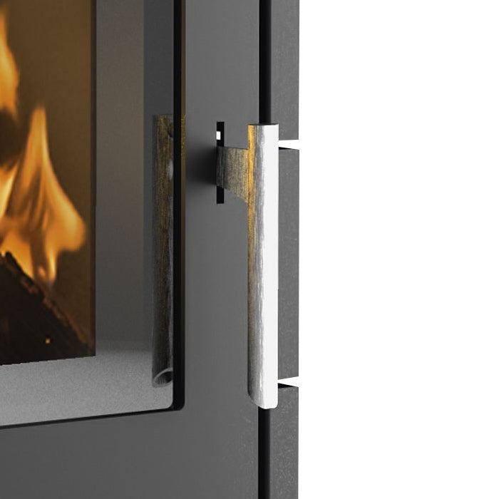 Dank der Mehrfachverriegelung wird das Verziehen der Feuertür durch hohe Temperaturen verhindert. Die besonders gute Dichtigkeit vermeidet den Eintritt unerwünschter Luftzufuhr. Dies stabilisiert die Verbrennungsqualität im Ofen.