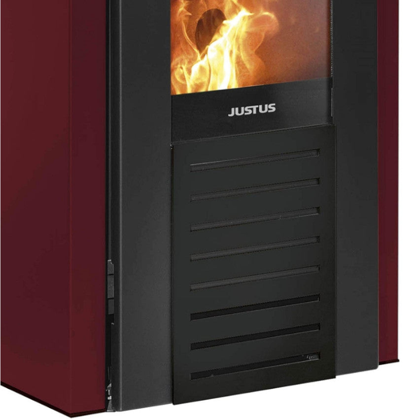 JUSTUS | Pelletofen | Sirkos Aqua | Stahl schwarz | Bordeauxrot | mit 9,2 kW Heizleistung | A+