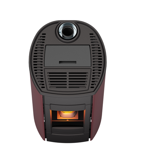 Formvollendeter Warmluftpelletkamin KALOR Ermetica 98 Cast Round mit 6,5 kW für ca. 165 m³ mit Farbwahl