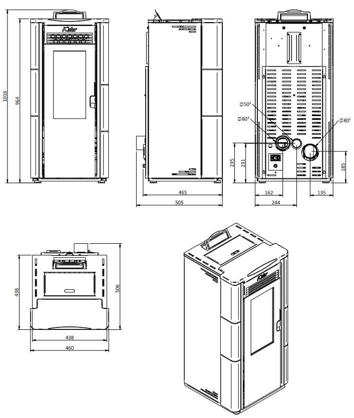 Ein eingebauter Motor unterstützt die Kanalisierungsfunktion des Ofens. Dieser Motor sorgt dafür, dass die warme Luft effektiv durch die Kanäle geleitet wird, um eine gleichmäßige und effiziente Wärmeverteilung zu gewährleisten.