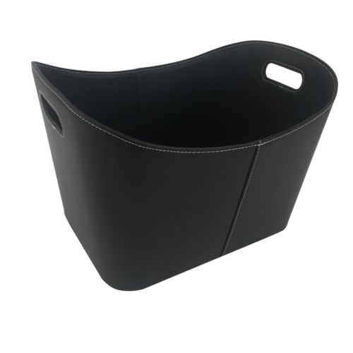 Kamin-Set:Holzkorb, Besteck & Handschuh| Lederimitat Schwarz