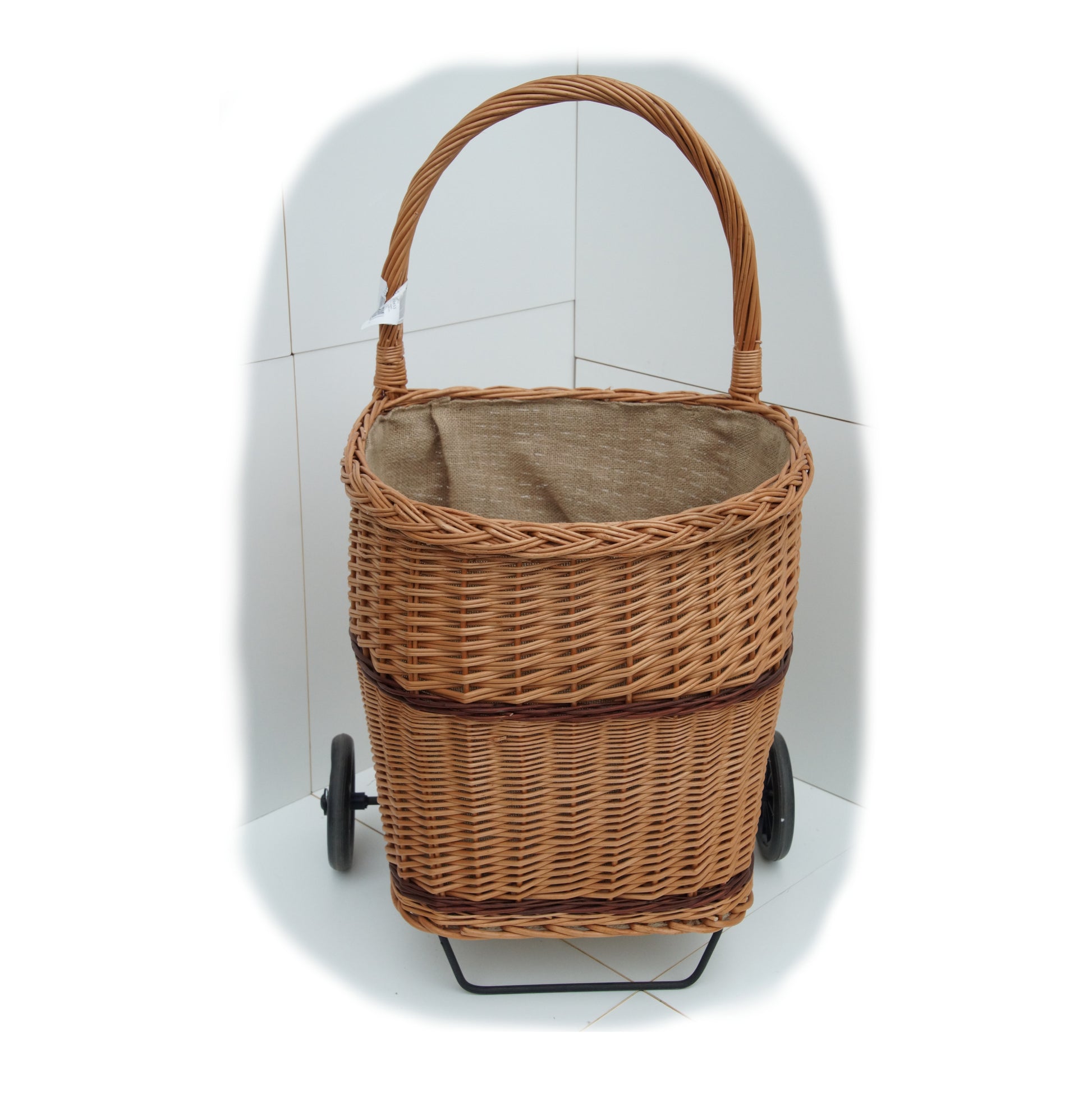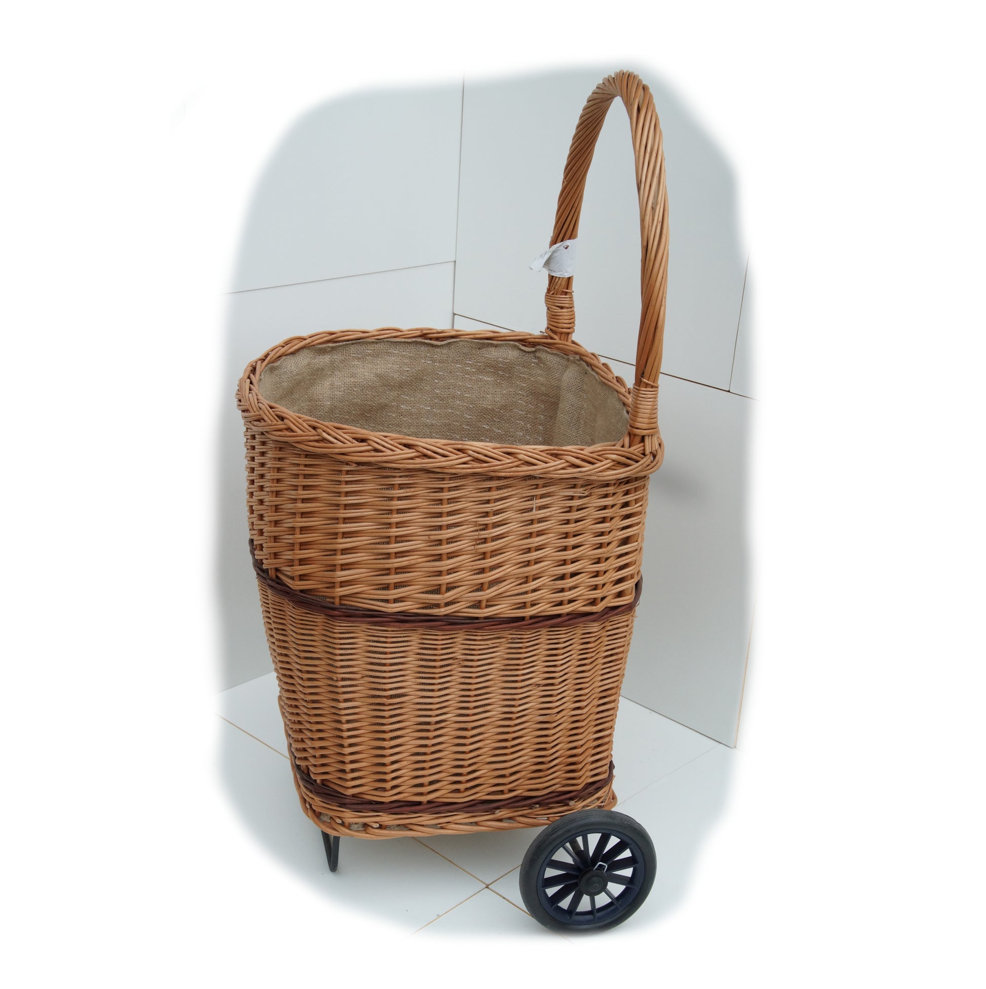 Kaminholzwagen hochwertige geschälte Weide mit Jute-Teileinsatz, zweifarbig gestreift