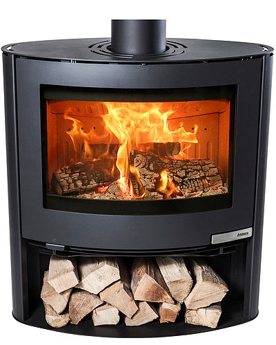 Die effektive Scheibenspülung gewährleistet stets klare Sicht auf das Feuer, während der praktische Aschekasten eine einfache Reinigung ermöglicht. Zusätzlich bietet das integrierte Holzlagerfach eine praktische Aufbewahrungsmöglichkeit für Brennmaterial. Seine Panoramascheibe bietet ein breites Flammenbild und schafft eine einladende Atmosphäre im Raum.