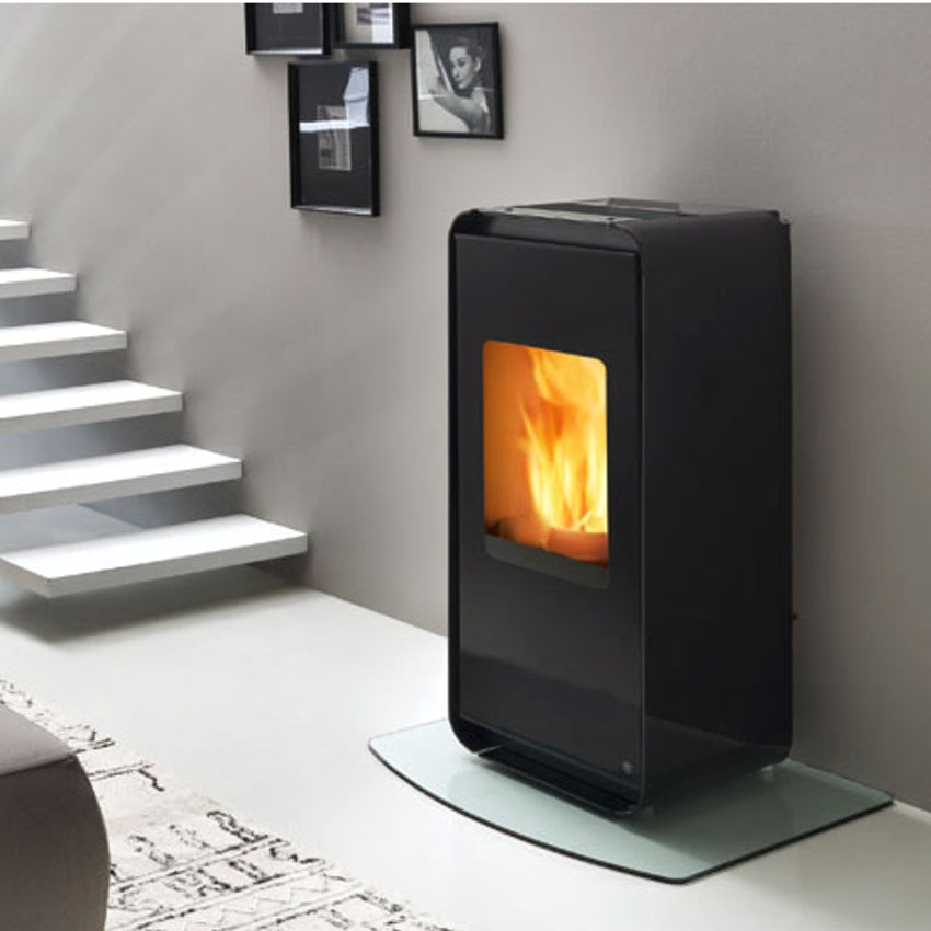 Der Pelletofen Nea 8kw ist für die modernen Passivhaüsern geeignet, gekennzeichnet durch ein modernes Design mit weichen Linien. Erhältlich mit Verkleidung aus weißen oder schwarzen Glas.