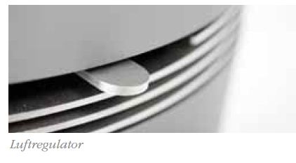 • Der Griff an der Tür wird belüftet, was bedeutet, dass man sich nicht die Finger verbrennt, wenn Holz nachgelegt werden soll.