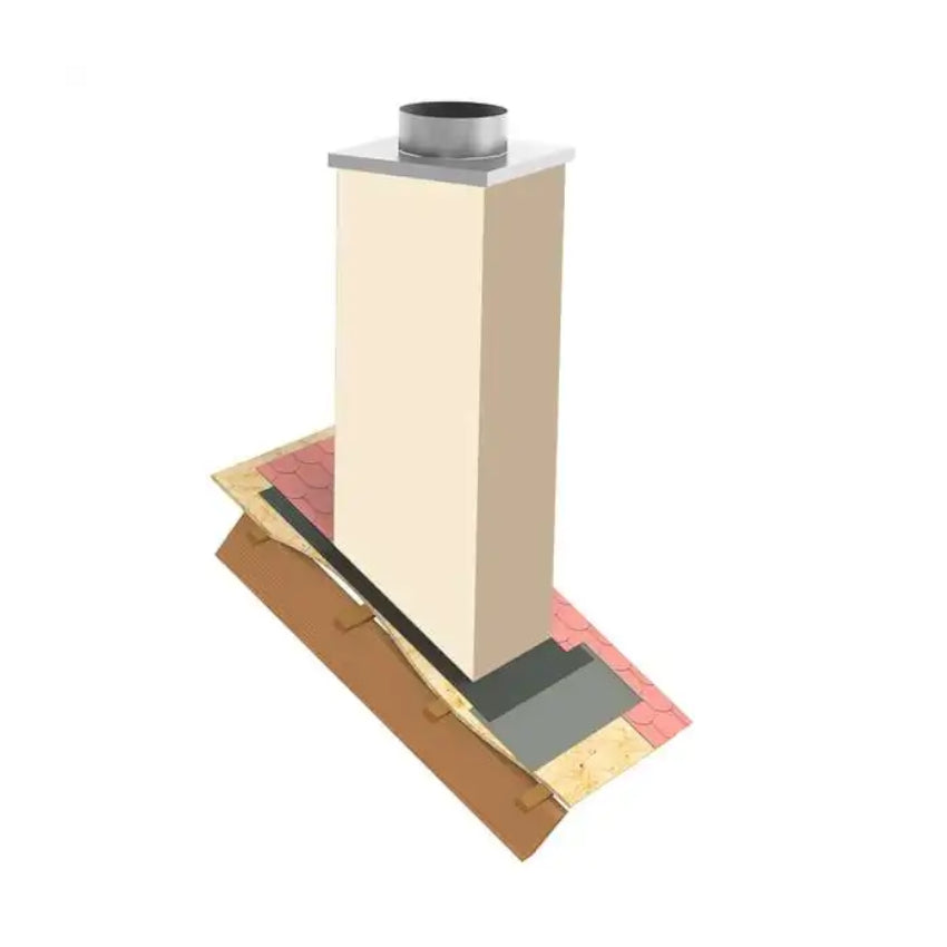 Für die Verkleidung des Schornsteinskopf mit einem Stülpkopf wird der Schacht durch das Dach nach Aussen geführt. Die Kaminverkleidung ist nach Baukastenprinzip konzipiert.