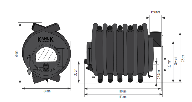Der KANUK Original mit 22 kW - der Warmluft- und Konvektionsofen für ca. 220 m² Wohnfläche | Heizen mit Energieeffizienzklasse A+