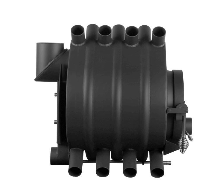 Durch die wie Rippen anliegenden Röhren wird die Raumluft von unten angesaugt und an der Brennkammer vorbeigeführt. Die dadurch erwärmte Luft wird nun gleichmäßig in verschiedene Richtungen in den Raum geblasen. Diese Technologie ist auch ein Grund für den makellosen Wirkungsgrad von fast 85 %. Das Konvektionsprinzip lässt sich durch Seitenbleche noch verstärken. Dafür finden Sie in der Zubehörauswahl verschieden Designs.