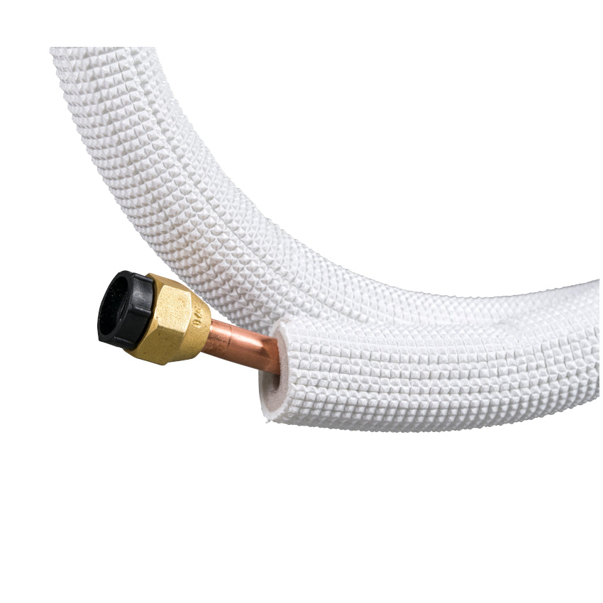 • 1x isolierte Kältemittelleitung Doppelrohr auf 5 Meter Rolle 1/2'': Hochwertige, vorisolierte Kältemittelleitung für effiziente und energieoptimierte Verbindungen zwischen Außen- und Innengerät.