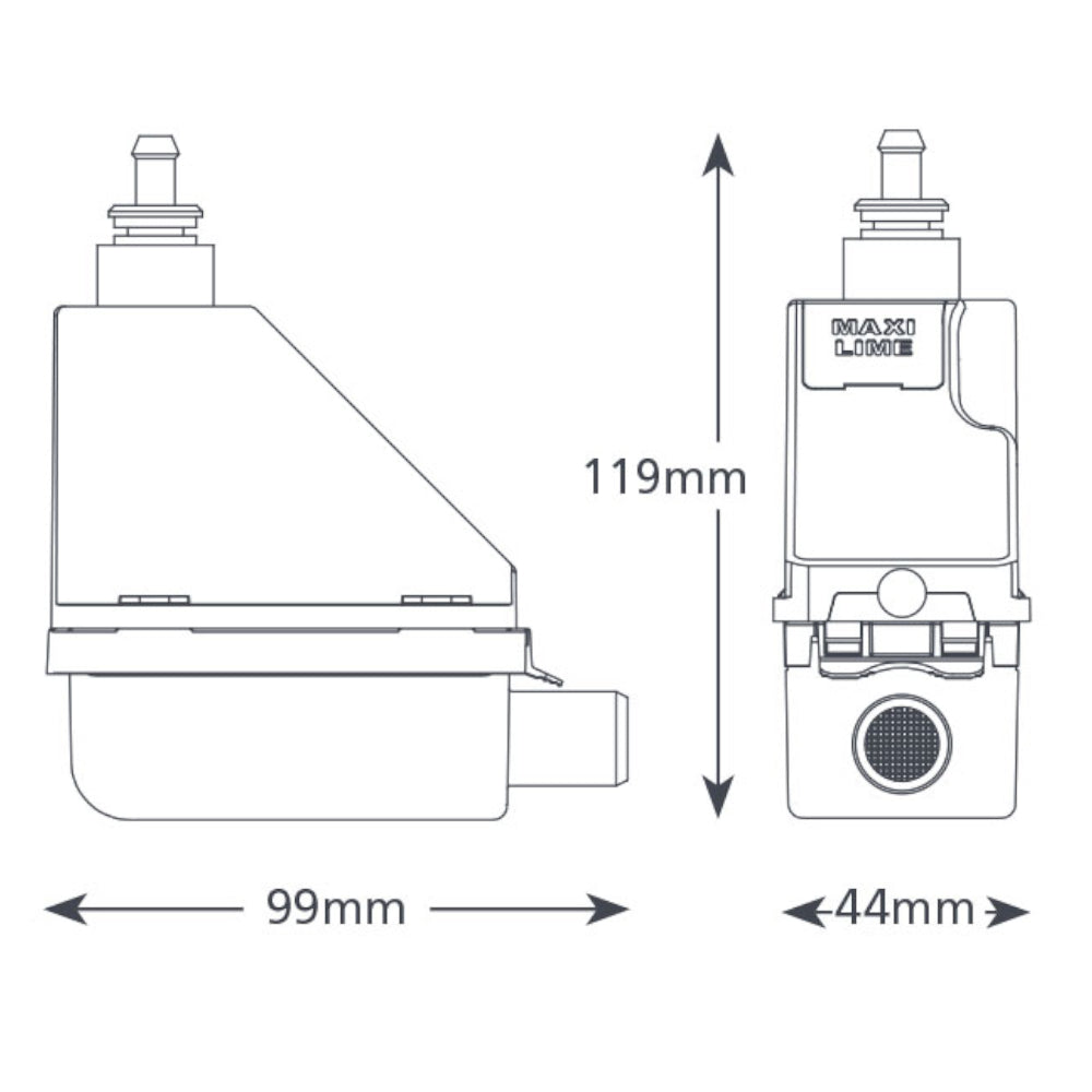 Die Kondensatpumpe bietet maximale Leistung bei geringer Größe. Sie arbeitet mit einem Schwimmerschalter, der die Pumpe automatisch aktiviert, wenn sich Wasser in der Ablasswanne befindet. Sollten Sie etwas mehr Leistung für eine größere Klimaanlage benötigen, dann ist die Maxi Green die erste Wahl. Die Kondensatpumpe kann wahlweise links oder rechts an das Klimagerät montiert werden. Durch die Positionierung der Pumpe im Winkel des Kanalsystems arbeitet sie besonders effektiv.
