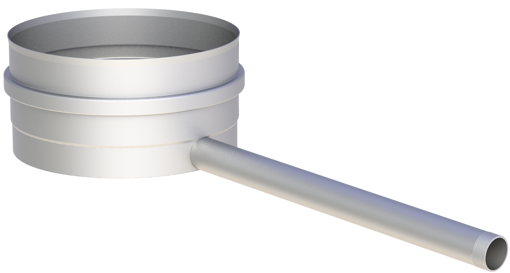 Die Kondensatschale mit Ablaufrohr bildet den Grundstein bzw. den Fuß des einwandigen Schornsteinsystems. Der Durchmesser ist im rechten Feld wählbar.