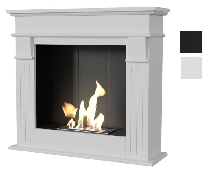 Ethanol Kamin Bio / Standkamin August Modell P im antiken Design inkl. MDF-Wandverkleidung weiß oder schwarz | TÜV geprüft