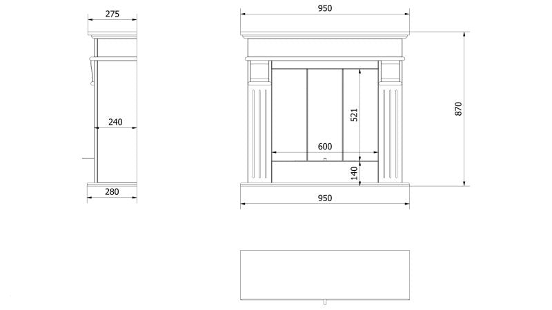 - Abmaße Biokamin Höhe x Breite x Tiefe: 870 x 950 x 280 mm