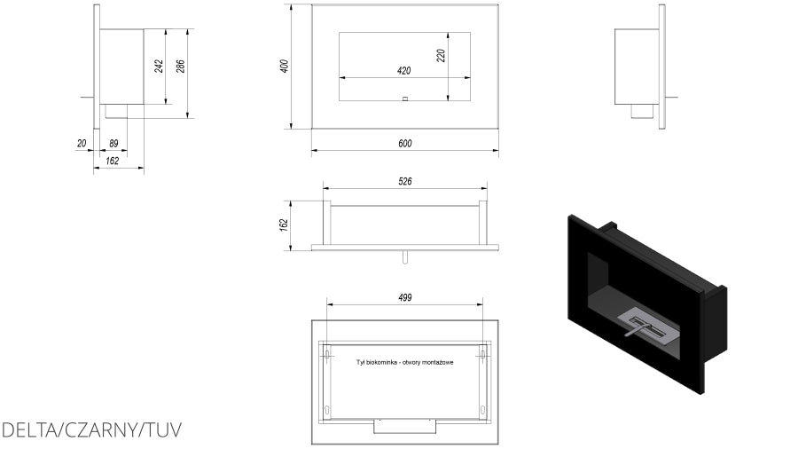 Ethanol Kamin, Bio- / Wandkamin Delta in schwarz | TÜV geprüft | DELTA/CZARNY/TUV
