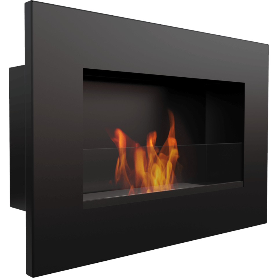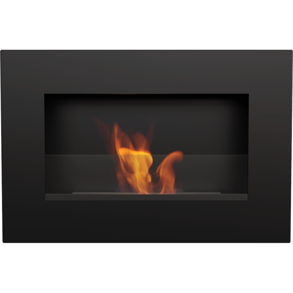 Der kompakte Wandkamin lässt sich dank seiner Größe von 374 x 648 x 164 mm (Höhe x Breite x Tiefe) leicht an jede Wand montieren. Er besteht aus einer Stahlkonstruktion und einer Einlassung, in der das lodernde Feuer zu sehen ist. Der Rahmen des Golf Biokamins ist in einem edlen Schwarz.