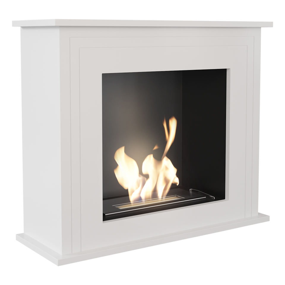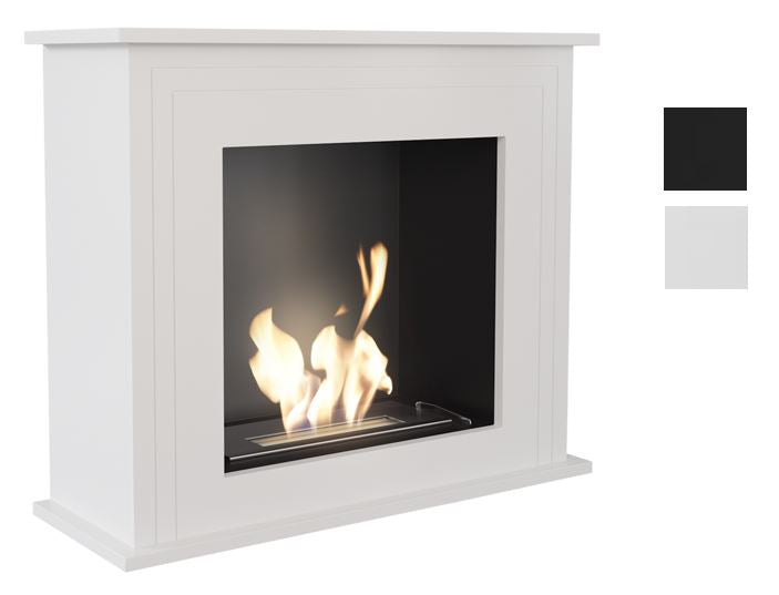 Ethanol Kamin Bio / Standkamin June im geradlinigen Design inkl. MDF-Wandverkleidung in weiß oder schwarz | TÜV geprüft