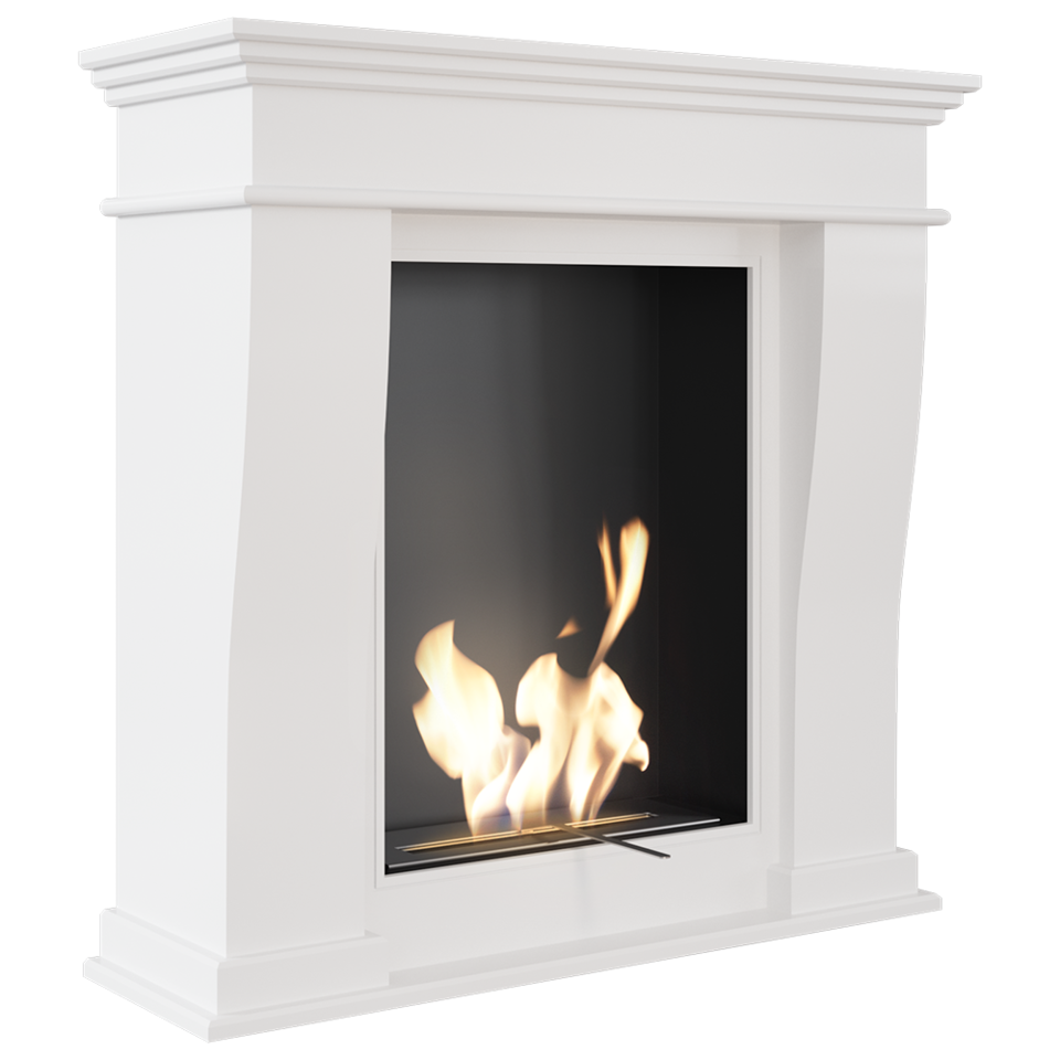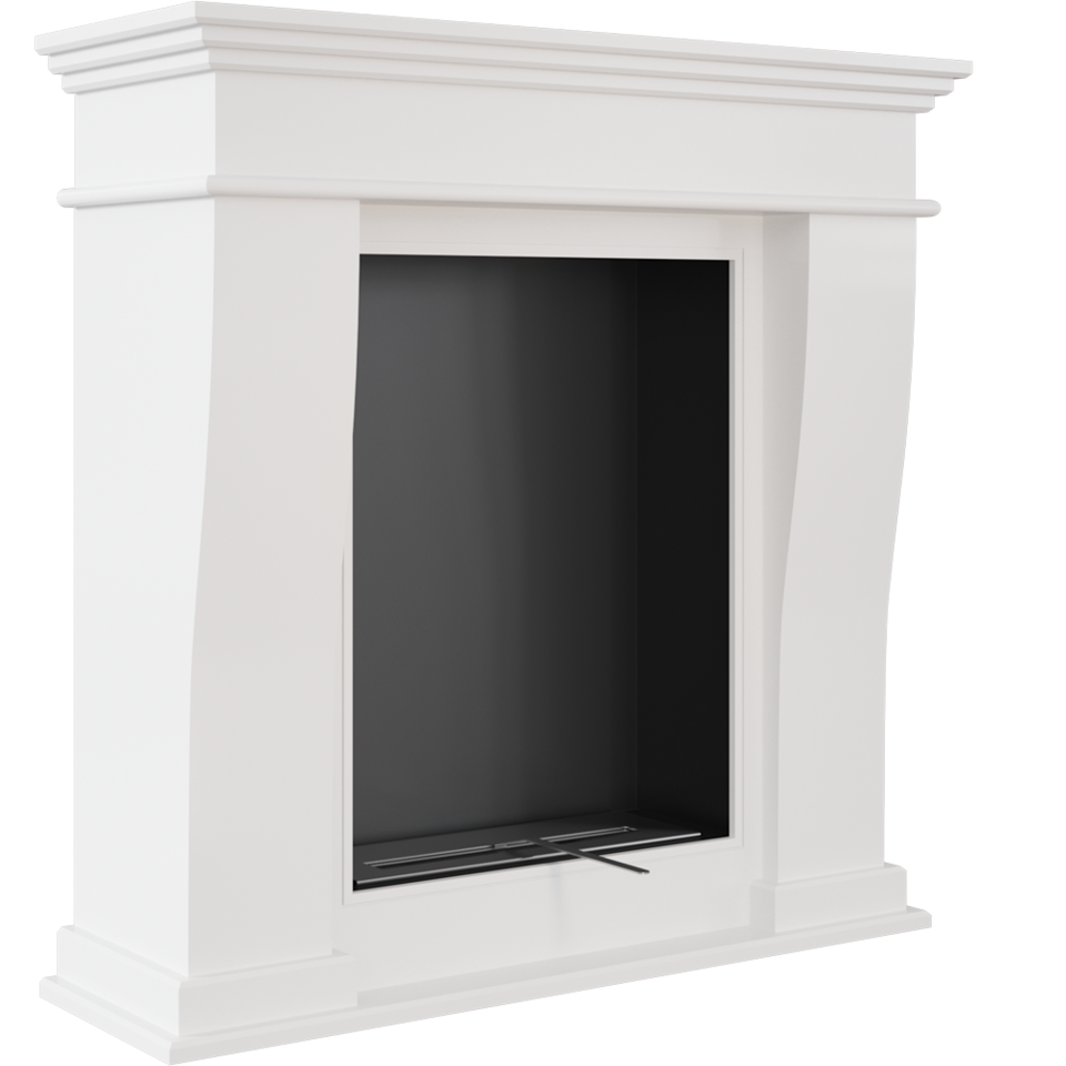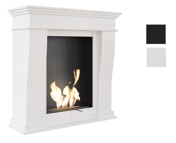 Dank seiner modernen und eleganten Formgebung passt das Modell zu vielen Stilrichtungen. Die Einfassung des Kamins in Weiß oder Schwarz besteht aus robusten MDF-Platten. Die zwei angedeuteten geschwungenen Säulen rechts und links am Korpus wirken sehr opulent und edel. Sie stützen optischen den Kaminsims, der mit einer ausladenden Tiefe auch als Ablagefläche verwendet werden kann.