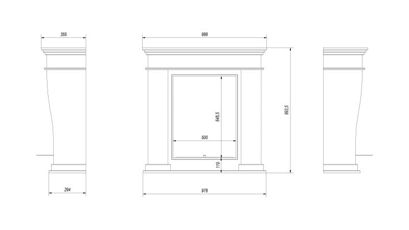 - Abmaße Biokamin Höhe x Breite x Tiefe: 993,5 x 988 x 355 mm