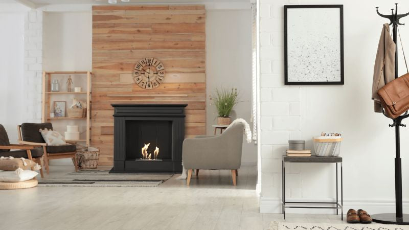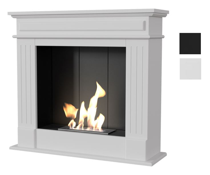 Ethanol Kamin Bio / Standkamin November Modell P im englischen Design inkl. MDF-Wandverkleidung in weiß oder schwarz | TÜV geprüft