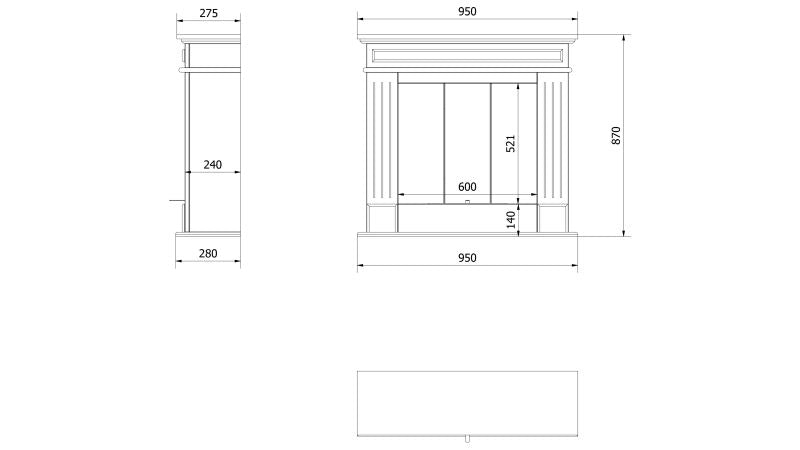 - Abmaße Biokamin Höhe x Breite x Tiefe: 870 x 950 x 280 mm