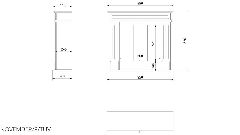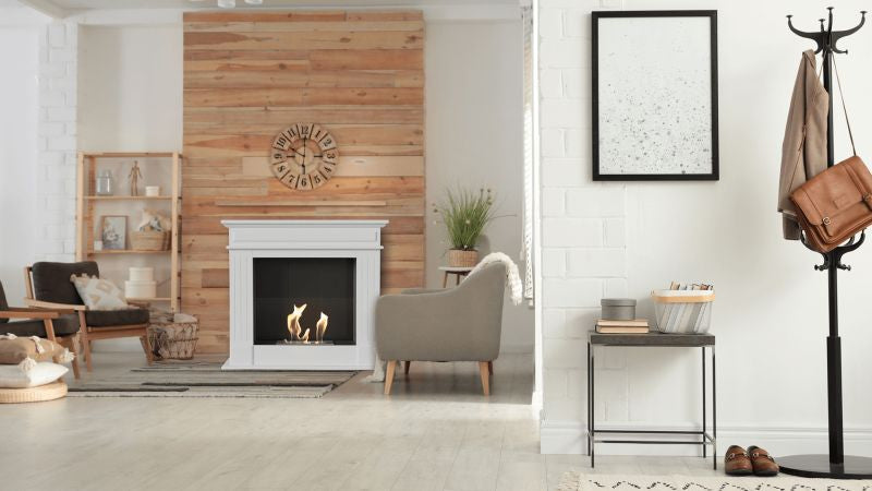 Ethanol Kamin Bio / Standkamin November Modell P im englischen Design inkl. MDF-Wandverkleidung weiß | TÜV geprüft | NOVEMBER/P/TUV