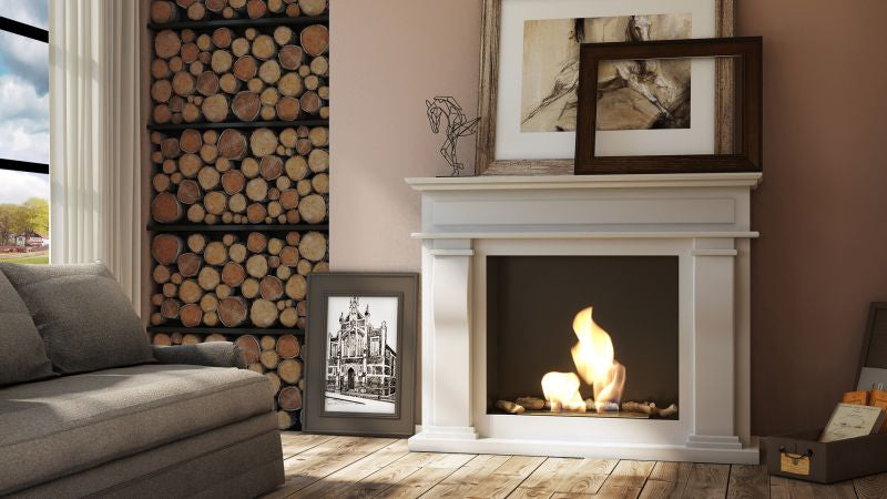 Ethanol Kamin Bio / Standkamin October im klassischen Design inkl. MDF-Wandverkleidung in weiß oder schwarz | TÜV geprüft