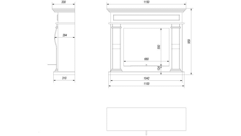 - Kaminumbau klassisch mit zwei angedeuteten Säulen und Kaminsims