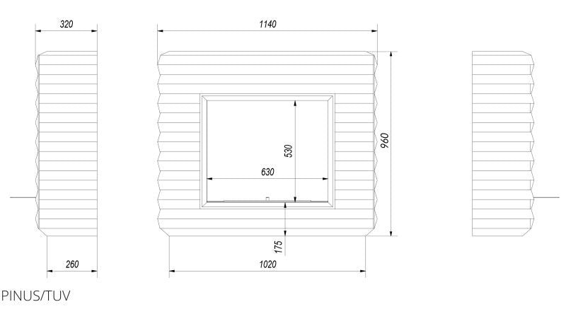 - Abmaße Biokamin Höhe x Breite x Tiefe: 960 x 1020 x 260 mm