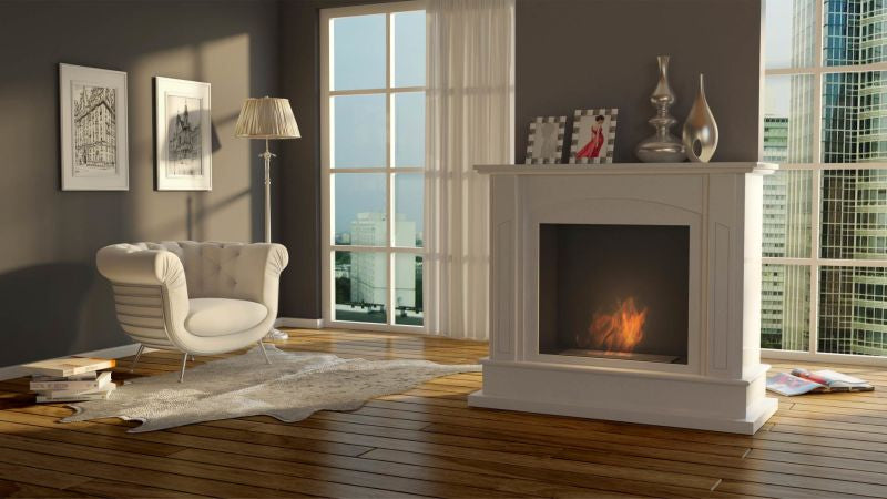 Ethanol Kamin Bio / Standkamin February im geradlinigen Design inkl. MDF-Kaminumbau weiß | TÜV geprüft | FEBRUARY/TUV