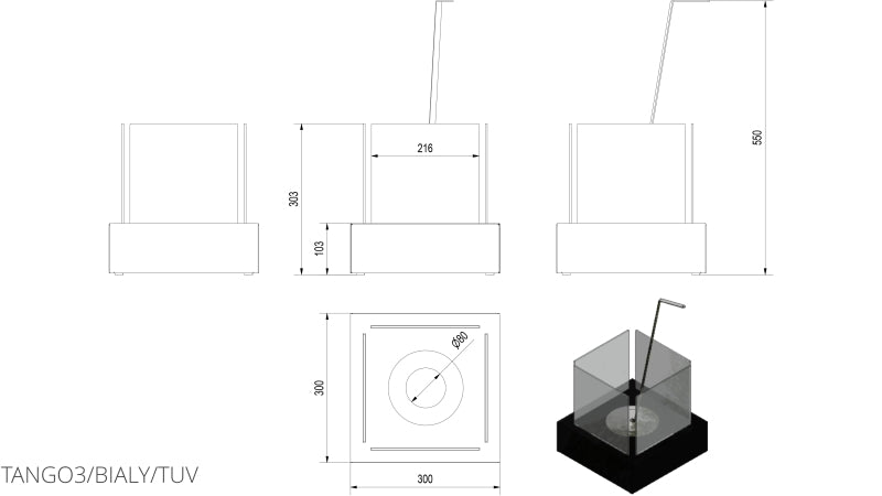 freistehender Ethanolkamin / Tischkamin Tango 3 in weiß | TÜV geprüft | TANGO3/BIALY/TUV