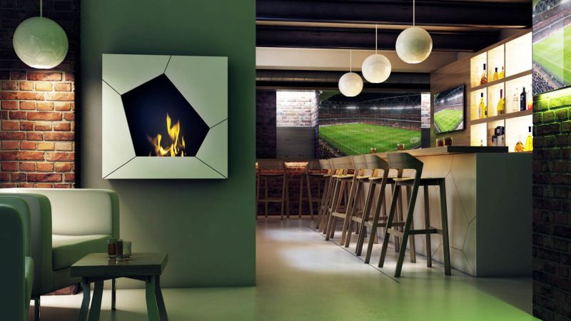 Ein echter Hingucker für jeden Ballsportfan. Der hängende Biokamin Ball trägt seinen Namen aufgrund seiner Struktur die thematisch an einen Fußball erinnert. Also die perfekte Wahl für einen Fußballliebhaber oder Fans einer anderen Ballsportart. Mit dem Wandkamin Ball erhalten Sie durch das Design in Weiß mit abgesetzten schmalen asymmetrischen schwarzen Linien des Rahmens ein besonders attraktives Modell. Der Biokamin lässt sich leicht an die Wand bringen. Die Rückwand des Kamins ist schwarz lackiert. So kommt das lodernde Feuer noch mehr zur Geltung.