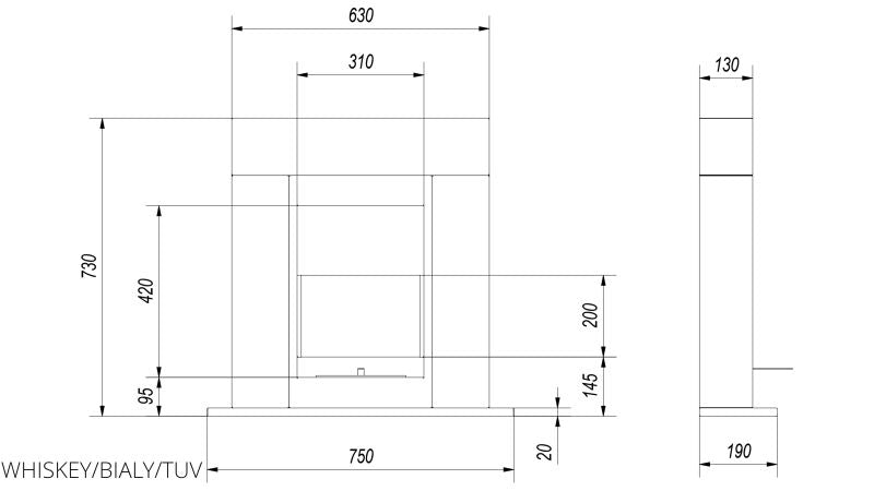 - Abmaße Biokamin Höhe x Breite x Tiefe: 730 x 750 x 190 mm