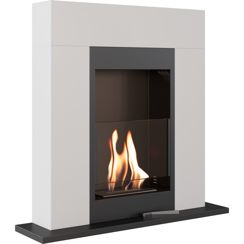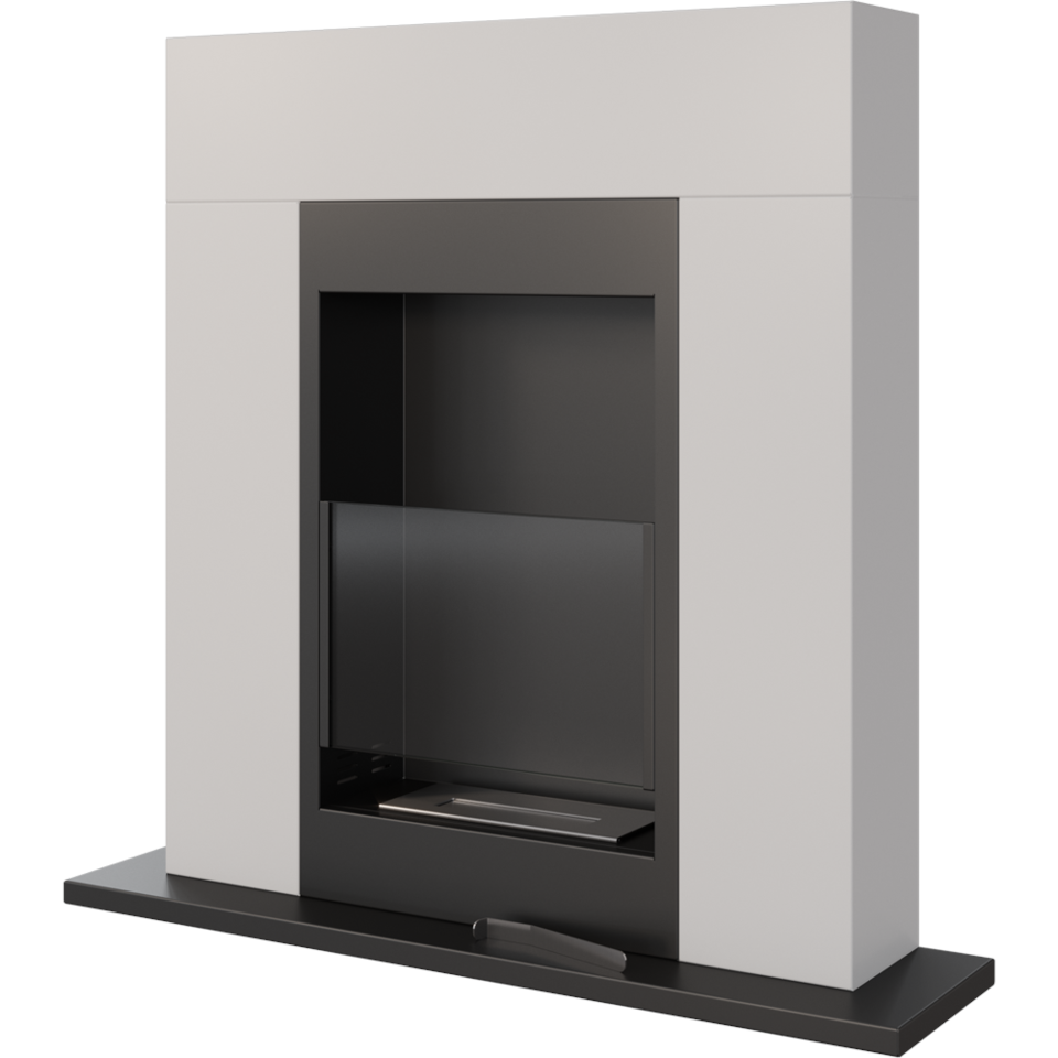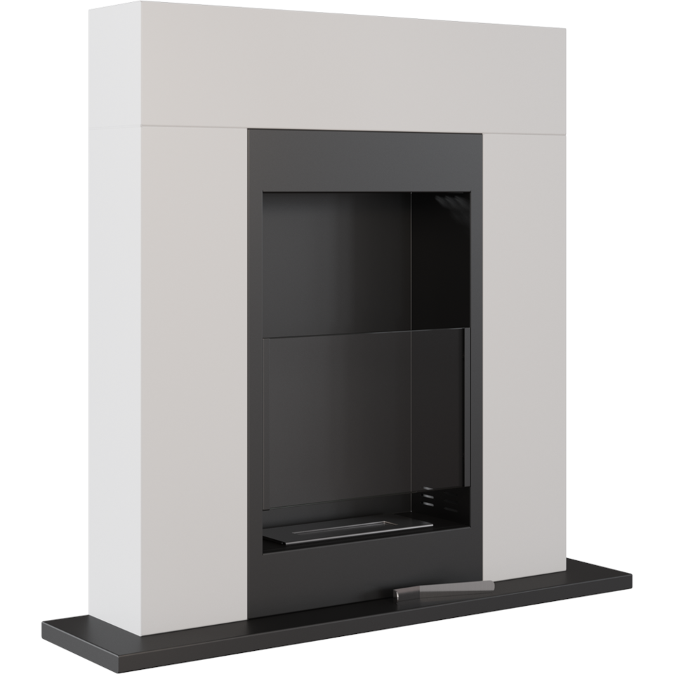 Ethanol Kamin Bio / Standkamin Whiskey im modernen Design inkl. Stahl-Verkleidung in weiß + Schutzglas | TÜV geprüft | WHISKEY/BIALY/TUV