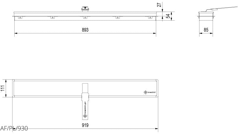 • Abmaße unterer Teil der Brennkammer (Einfassung) HxBxT: 54 x 893 x 94 mm