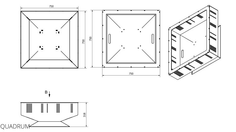 Kratki Feuerschale Quadrum | 750x750x318 mm | ohne Grill | QUADRUM