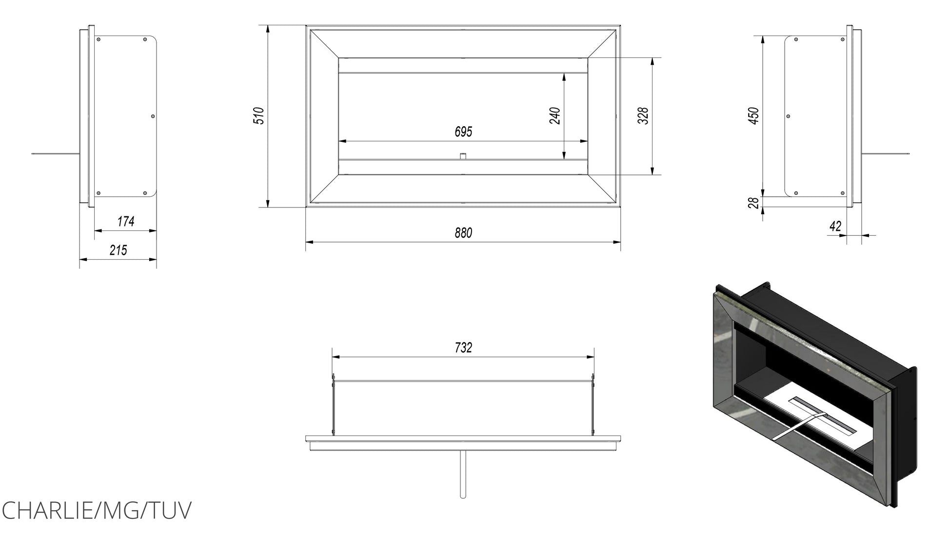 Lieferumfang des CHARLIE/MG/TUV Biokamins: