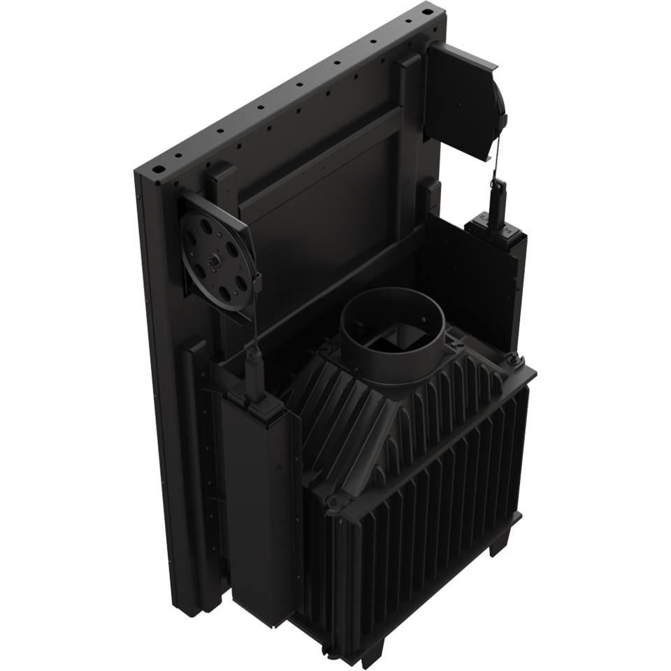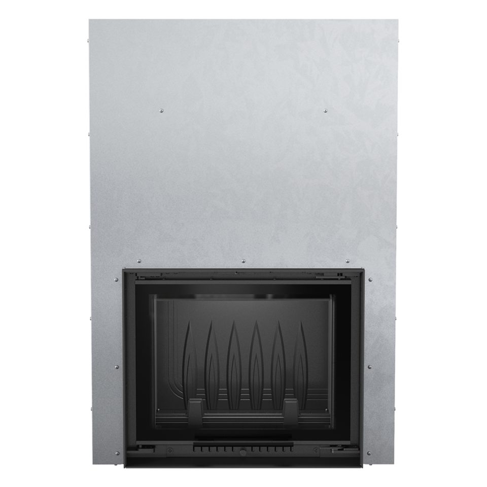 Eine optimale Nutzung der Wärmeenergie wird durch die am Korpus angebrachten Radiatorrippen erreicht, welche die Wärmefläche vergrößern. Zusätzlich ist der Einsatz aus hochwertigem Gusseisen gefertigt und verfügt über eine Materialstärke von 8 mm. Dank des großzügigen Brennraums finden Holzscheite bis zu einer Länge von 33 cm bequem Platz. Die hintere Platte im Brennraum ist zudem mit einem ansprechenden, dekorativen Muster versehen. Ein hoher Rauchabzug ermöglicht einen verbesserten Wärmeaustausch zwischen den heißen Abgasen und dem Raum. Durch einen Deflektor im Rauchabgasweg werden Partikel nachverbrannt, was die Effektivität des Kamineinsatzes weiter steigert.