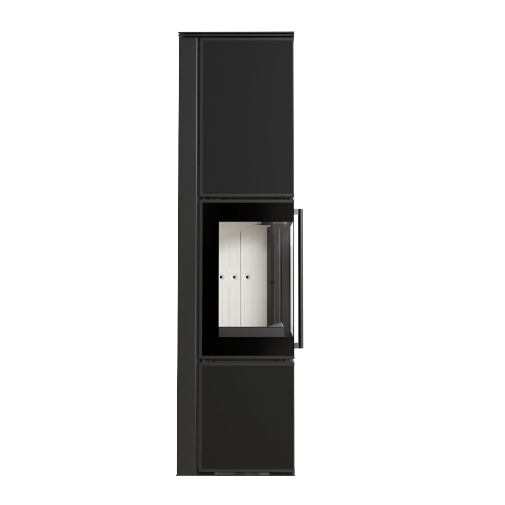 - Kratki Kaminofen TORA/L Quarzsinter Nero Assoluto, mit weißer Brennkammer