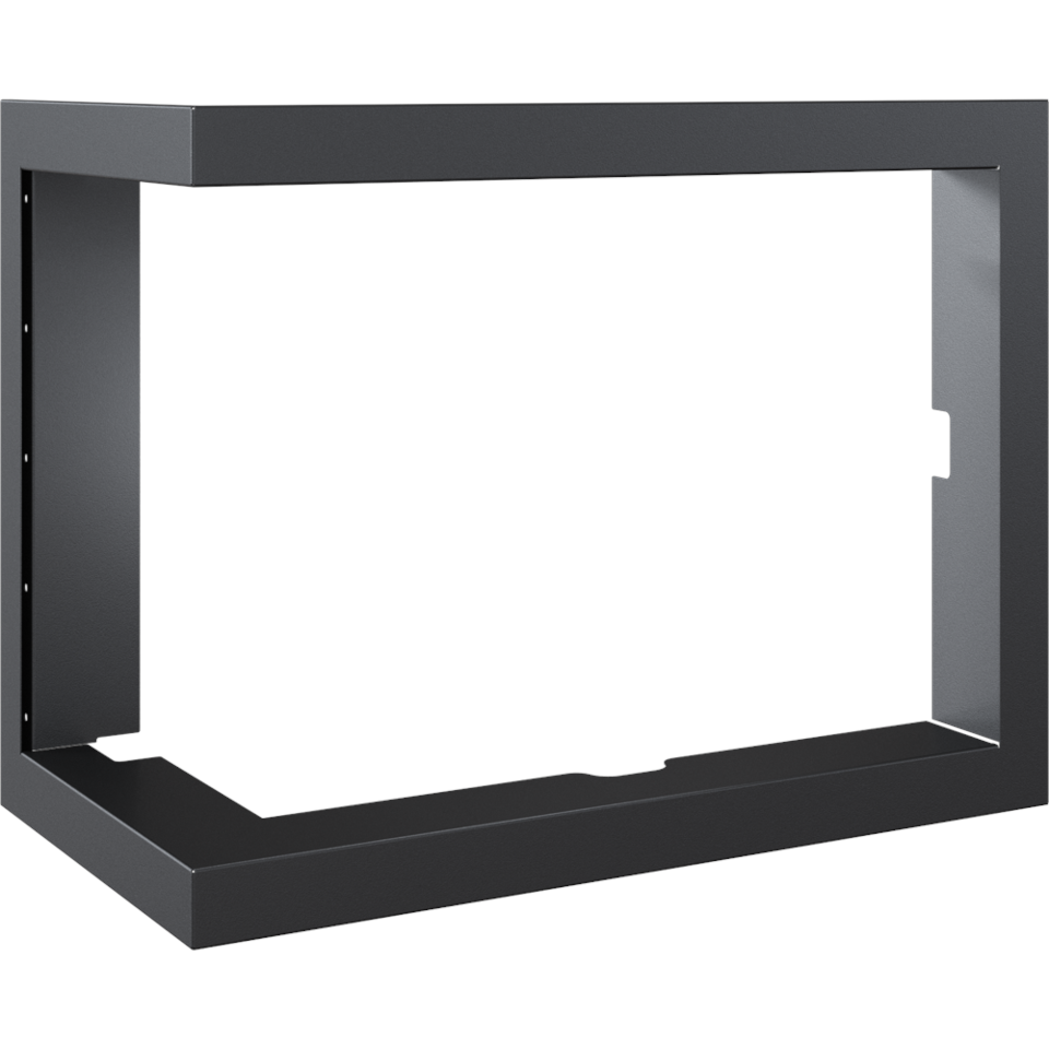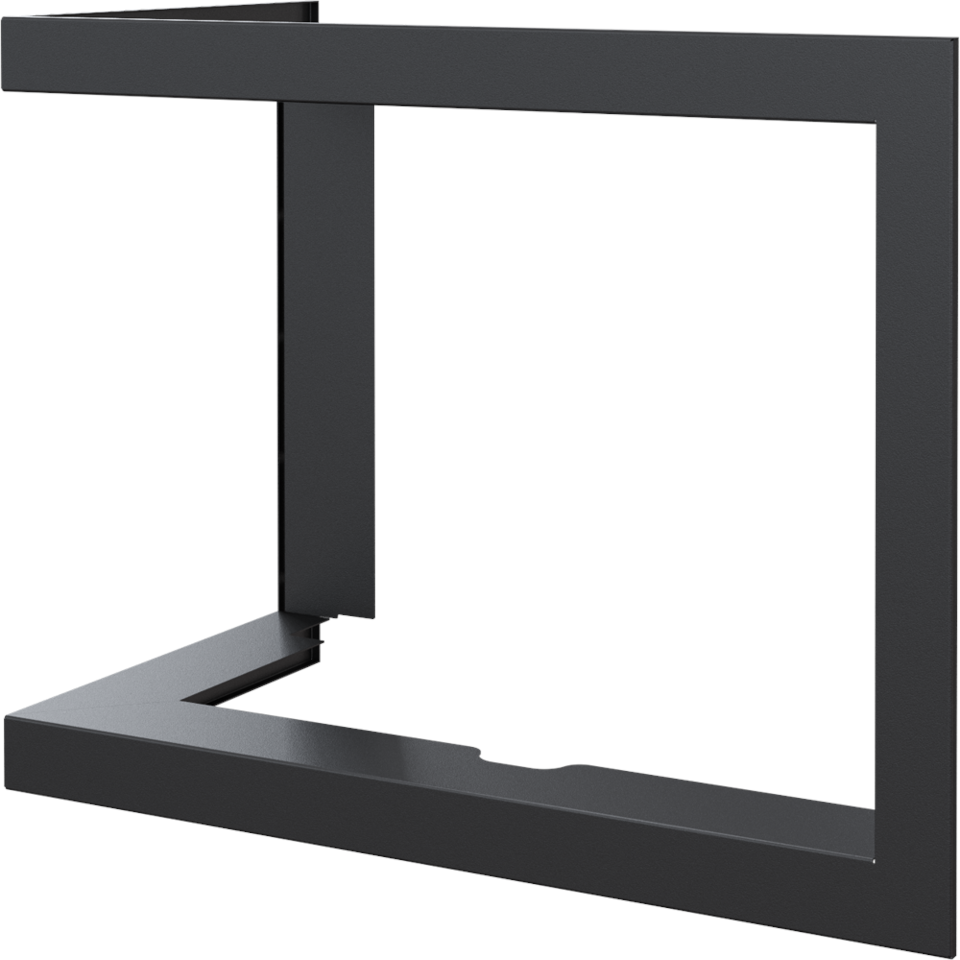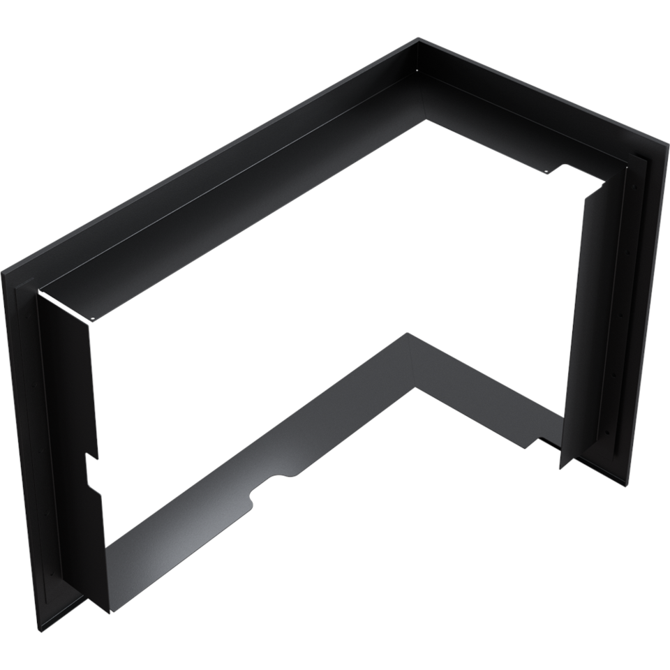 Durch den schicken Zierrahmen entsteht ein sauberes Finish zum Putz an der Wand. Der Rahmen besteht aus 1,5 mm starkem pulverbeschichtetem Stahl und ist hitzebeständig. Er ist für die Eckvarianten des Kamineinsatz Lucy 12 mit der Türöffnung nach links (Scharniere links) vorgesehen.