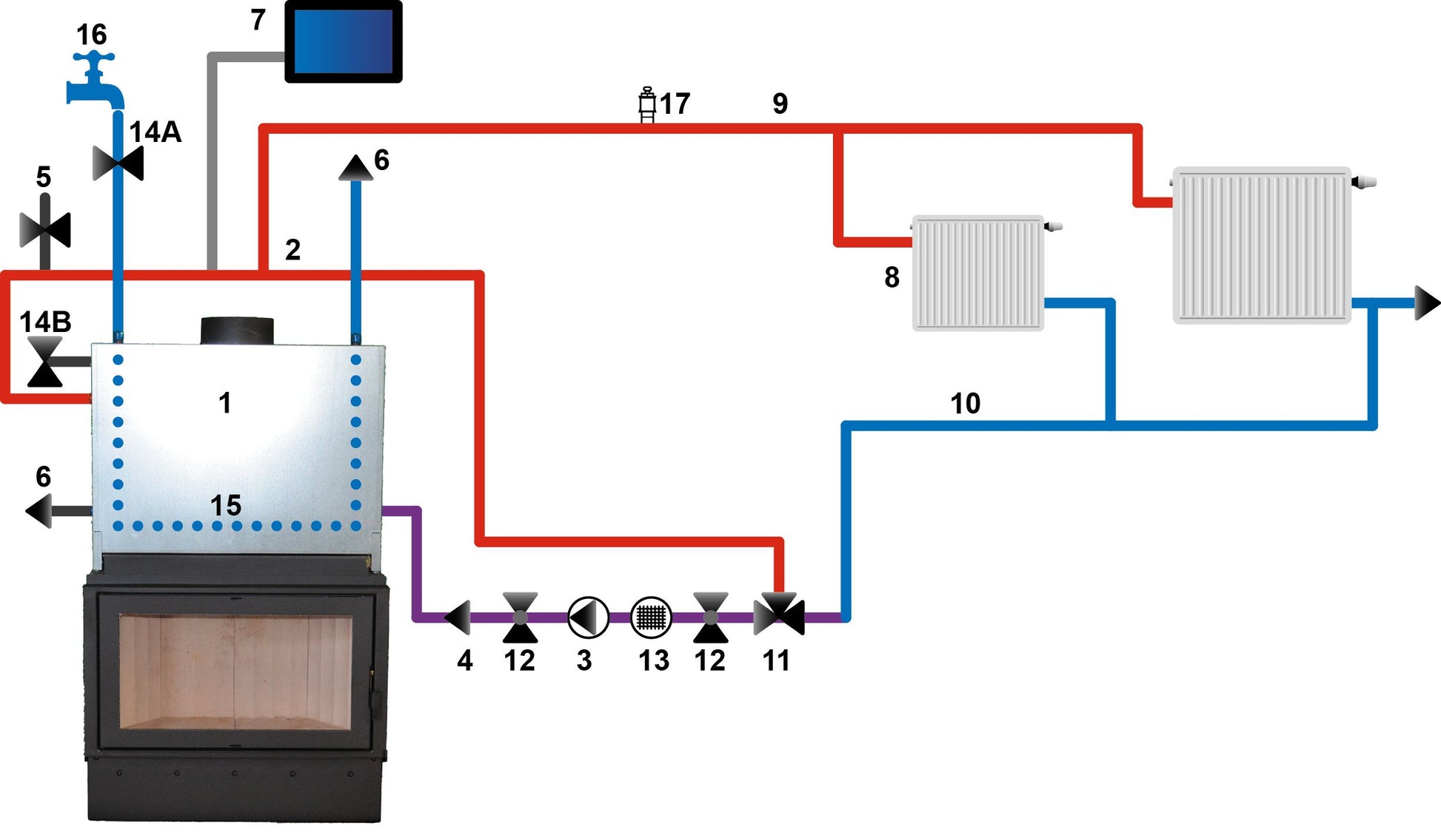 Dank des Warmwasser-Kamineinsatzes B 104 V15 vom tschechischem Hersteller Kretz können Sie sich ganz einfach die Wohlfühlwärme ins Haus holen, ohne auf bestimmte Designs achten zu müssen. Er ist dafür gemacht, sich ganz nach Ihren Wünschen individuell in Ihrem Wohnraum anzupassen. Der qualitativ hochwertige Kamineinsatz wurde entworfen, um Wasser durch eine automatische Verbrennung von Holz im Brennraum zu erhitzen. Das Wasser im Heizkamin wird erwärmt und an die Heizanlage geschickt.