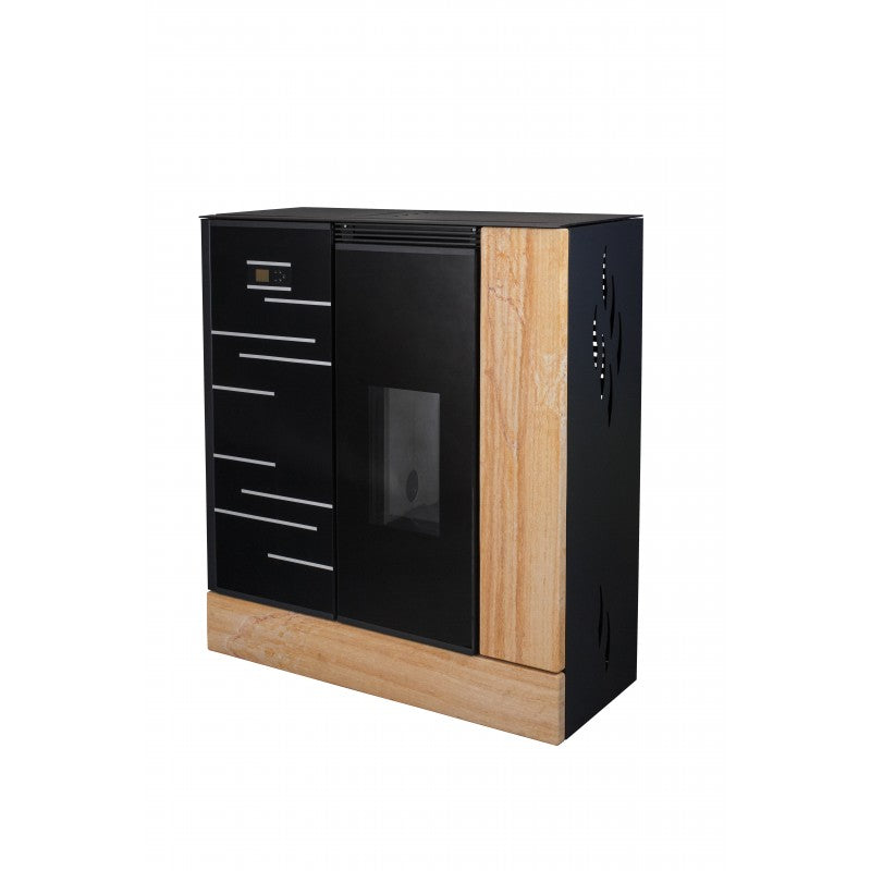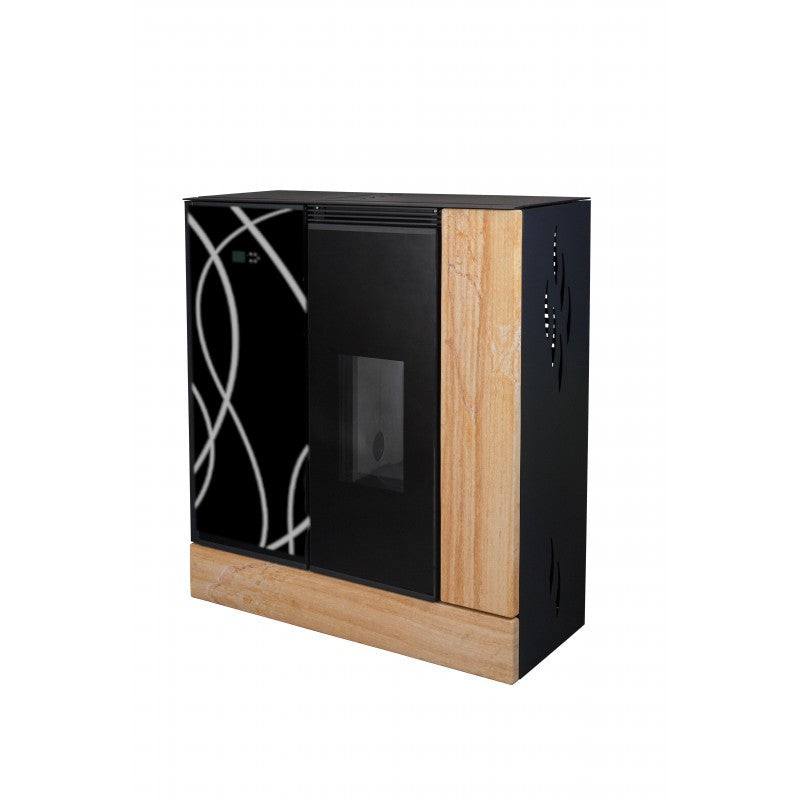 automatischer Pelletkaminofen AGURO mit Sandsteinverkleidung und verschiedenen Glasverkleidungen zur Auswahl | 6,4 kW | Pellettank 35 kg