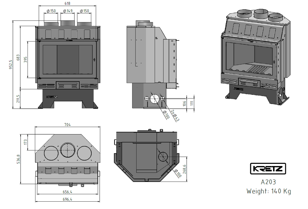 Kretz zweischichtiger Warmluft-Kamineinsatz A 203