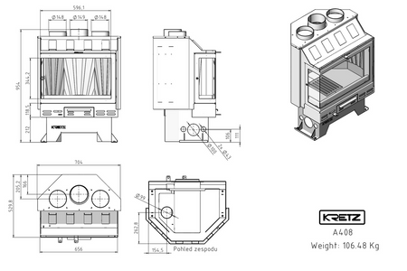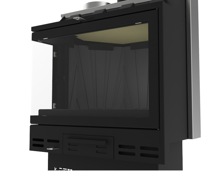 Kretz doppelwandiger Warmluft-Kamineinsatz A 408 mit geteilter Eckverglasung