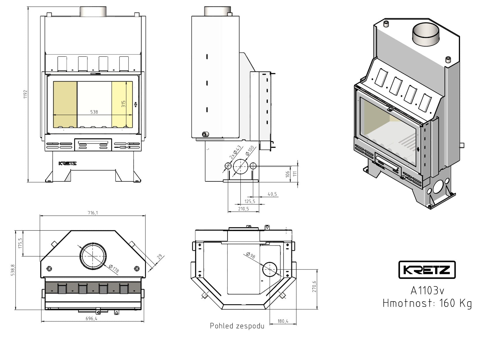 Kretz Warmwasser-Kamineinsatz A 1103 V
