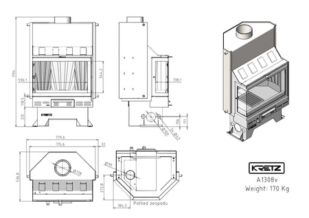 Der A 1308 V ist ein moderner Breitbild-Kamineinsatz mit hoher Effizienz und umweltfreundlicher Verbrennung. Der fachmännisch abgedichtete Feuerraum aus feuerfestem Gusseisen garantiert eine perfekte Verbrennung.