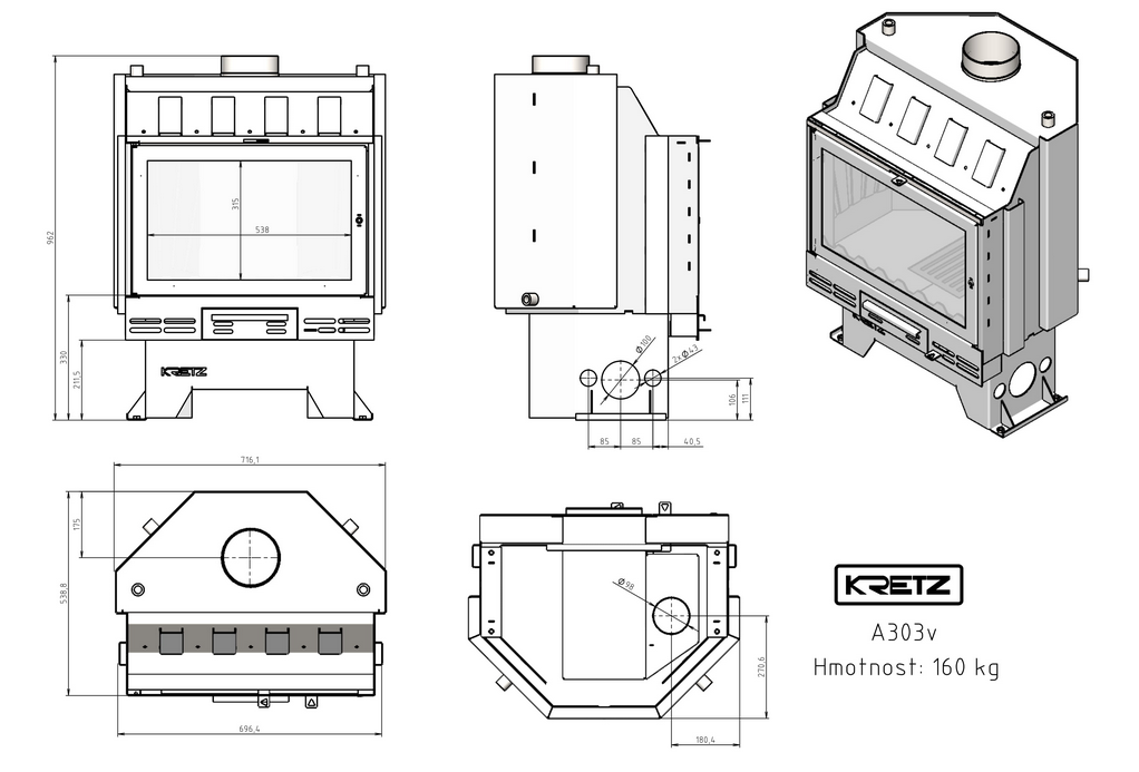 Kretz Warmwasser-Kamineinsatz A 303 V